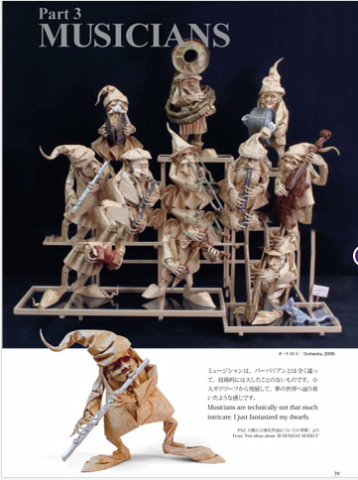- 矮人(Dwarf) 矮人的折纸作品是 Eric Joisel 对角色塑造的独特理解,通过精确的折叠和形态控制,Joisel 将矮人的形象赋予了威严与个性。每一条折线、每一处细节,都体现了 Joisel 的创作精确度和艺术风格。